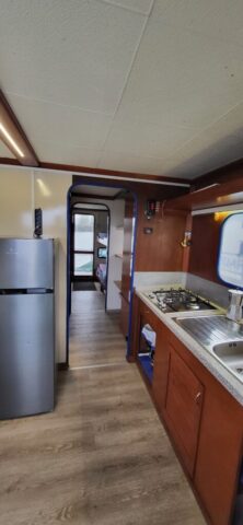 Dies ist unser mittleres Hausboot, welches für 3-4 Personen ausreichend Platz bietet.