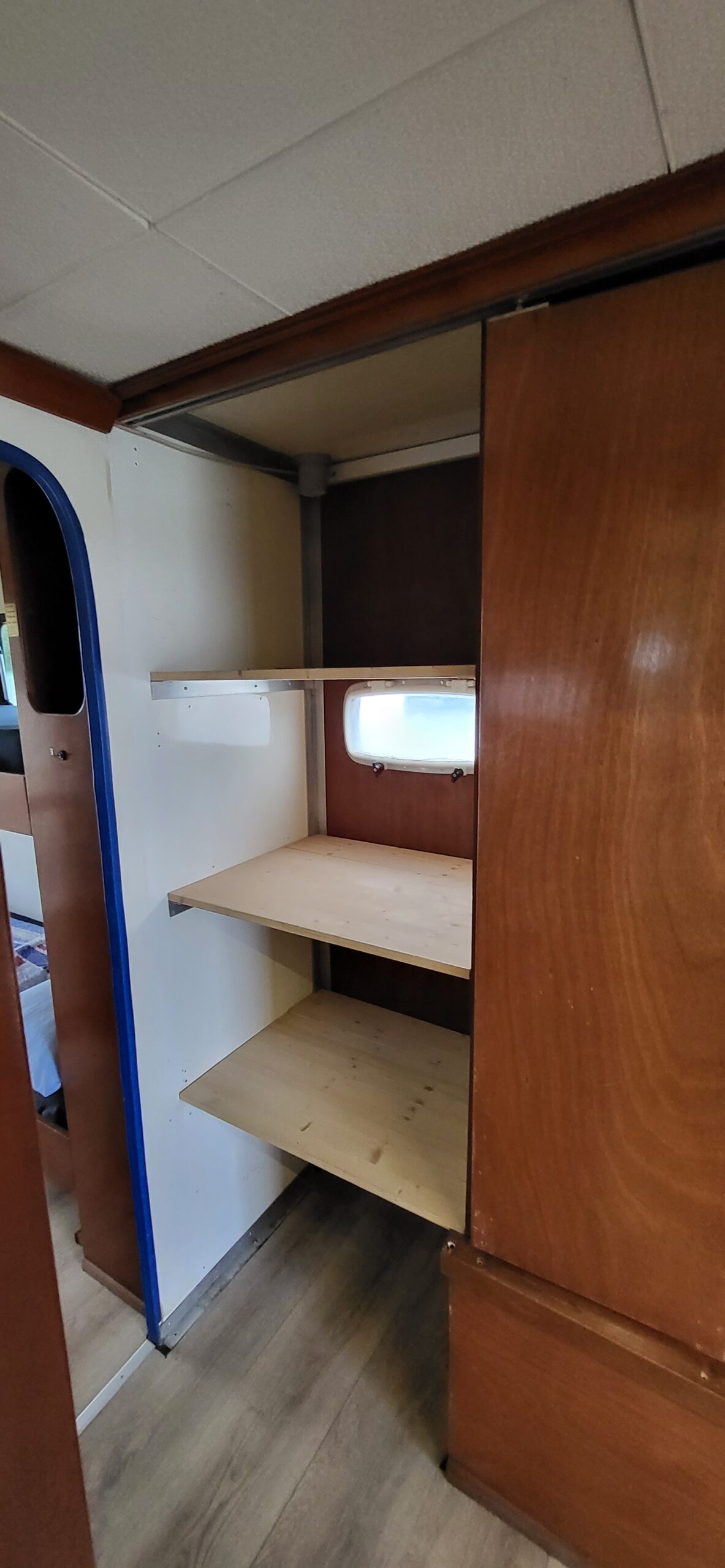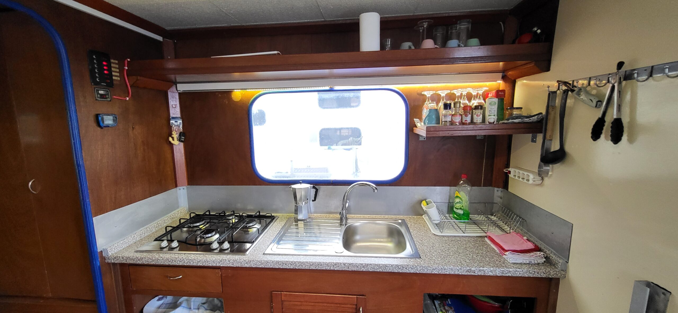 Es wurde ausgestattet mit einem Gasgrill, einer großen Küche, Essecke (inkl. Kühl- und Gefrierkombination), Sanitärraum und getrennten Schlafraum. Im hinteren Bereich befindet sich ebenfalls ein Stockbett für 2 Personen. Die einzelnen Räume wurden mit Fenstern ergänzt, so dass an heißen Tagen ein Durchzug gewährleistet werden kann.